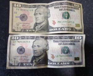 ورقة من فئة 10 دولار مزورة انتبهو... أطول من العادية.