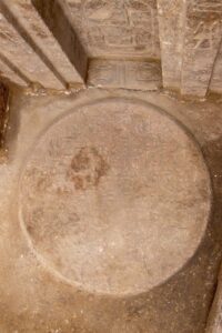▫️ تم العثور على مائدة للقرابين من الجرانيت الأحمر قطرها 92 ونصف سم وتحمل نص يسجل قوائم القرابين