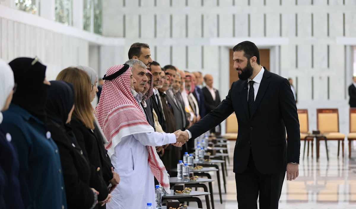 وشدد الشرع، خلال لقاء مع وجهاء وأعيان من محافظة القنيطرة ومنطقة الجولان المحتل في دمشق، اليوم، على «أهمية الدور الاجتماعي للوجهاء في تعزيز التماسك الوطني»، داعياً إياهم إلى «نقل هموم المواطنين وتطلعاتهم إلى مؤسسات الدولة».